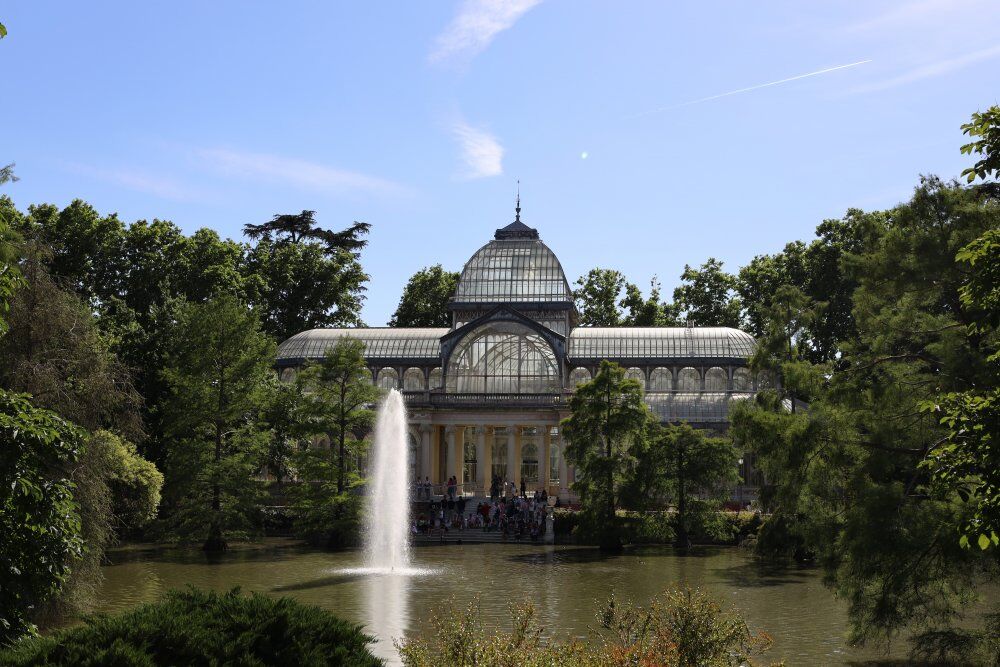 Parque de El Retiro; şehrin içinde yemyeşil yürüme yolları, devasa ağaçları, piknik alanları, gölde sandal keyfi ile görülmeye değer bir park. El Retiro parkı içinde yer alan Palacio de Cristal 1887 yılında Filipinler’den gelen bitki sergisi için geçici olarak yapılmıştır. Filipinler o dönem İspanya’nın sömürgesiydi. Ancak halk tarafından çok beğenildiği için kalıcı hale getirildi. Tamamen cam ve demirden yapılmış olan bina, ışığın camlardan süzülmesiyle oluşan görüntüsü ile büyüleyicidir. Yapının önünde yapay bir gölet ve içinde ördekler, kuğular bulunmaktadır.