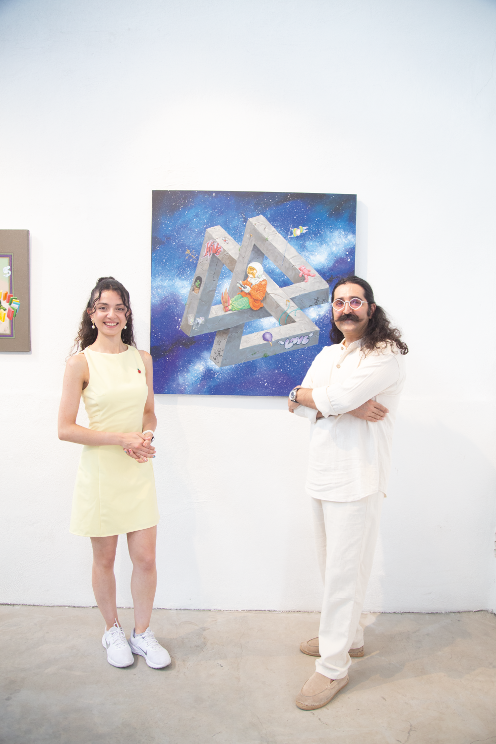 “In The Now” yani “Şimdi”de olmak fikri, pandemi döneminde daha da anlam kazandı. O süreç bize bugünü yaşamanın ne kadar önemli olduğunu gösterdi. Aslında ben çalışmalarımda her zaman bu anlamı taşımaya çalışıyorum; geçmişten gelen bir karakter ya da düşünceyle bugünü birleştirmek… Bu seride 2020’den beri ürettiğim eserler var. Bazıları daha önce başka yerlerde sergilendi, bazıları ise burada ilk kez izleyici önüne çıkıyor.
